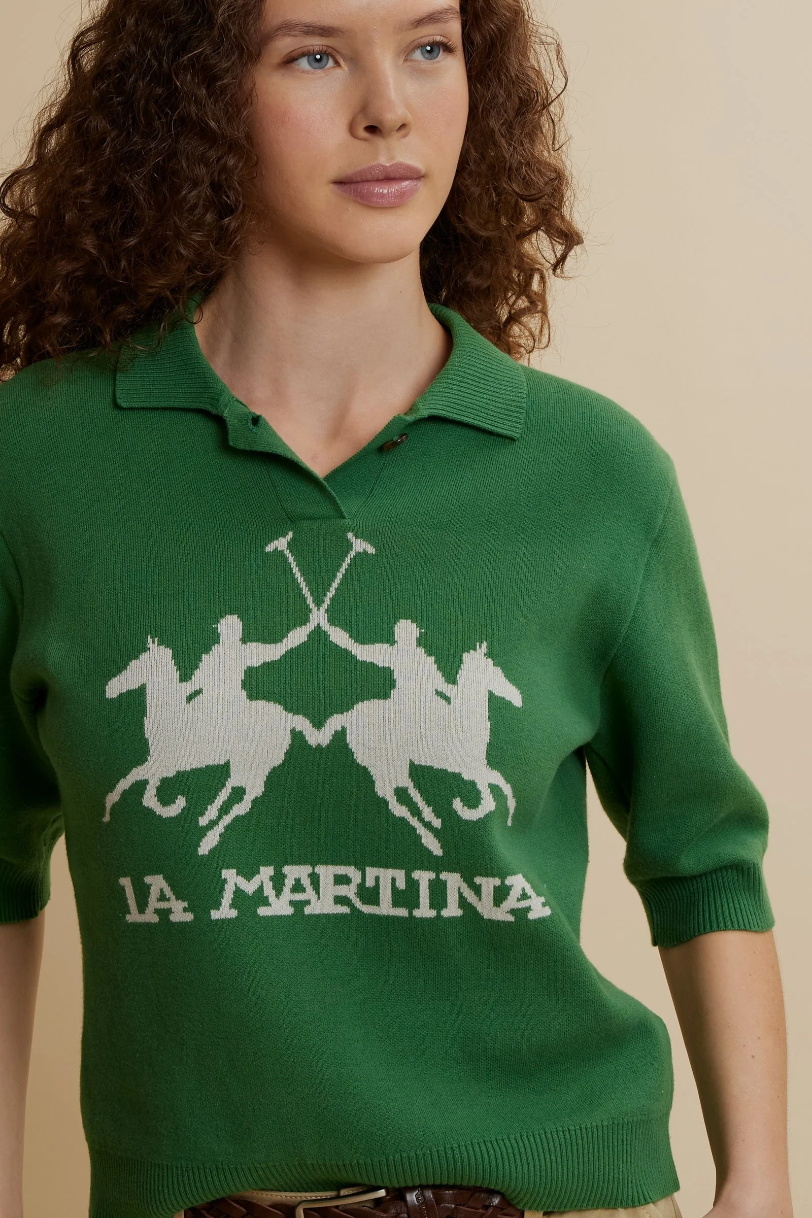Damen Poloshirt aus kompakter Strickware mit Maxi-Intarsie - Candela